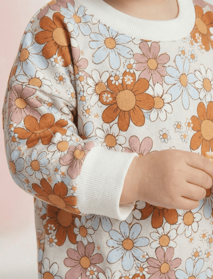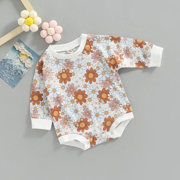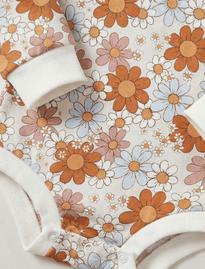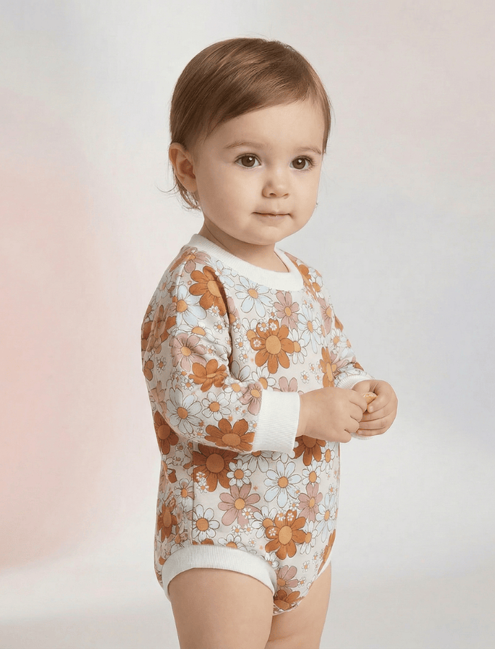BODY MANGA LARGA CON FLORES NARANJA, CUELLO Y PUÑOS BLANCOS