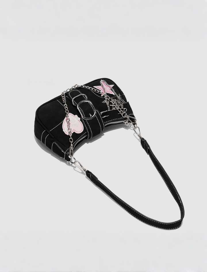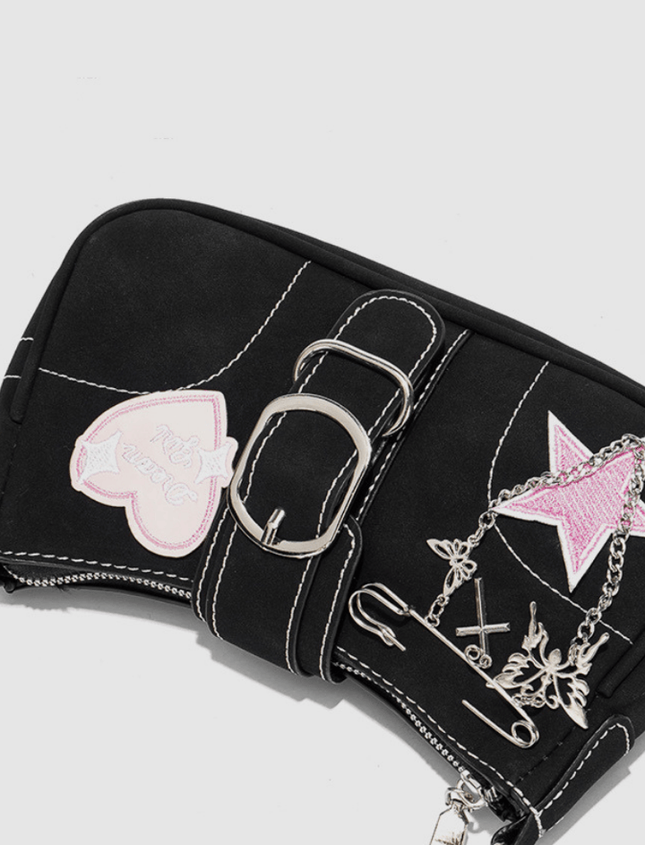El Star Rebel combina un estilo atrevido y femenino con detalles únicos como parches decorativos, cadenas metálicas y costuras marcadas. Su diseño compacto y moderno aporta personalidad a cualquier outfit, convirtiéndolo en el accesorio perfecto para quienes aman un look audaz y con actitud.
