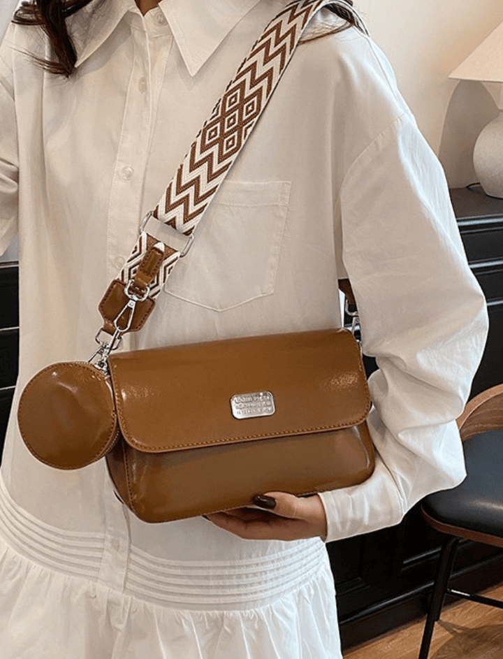 Este bolso cruzado combina elegancia y funcionalidad en un diseño compacto y moderno. Su acabado brillante le da un toque sofisticado, mientras que el monedero circular incluido añade practicidad para llevar pequeños esenciales siempre a mano. La correa ajustable permite usarlo al hombro o estilo crossbody, ofreciendo comodidad en cualquier ocasión. Un accesorio versátil, ideal para looks casuales o más arreglados.