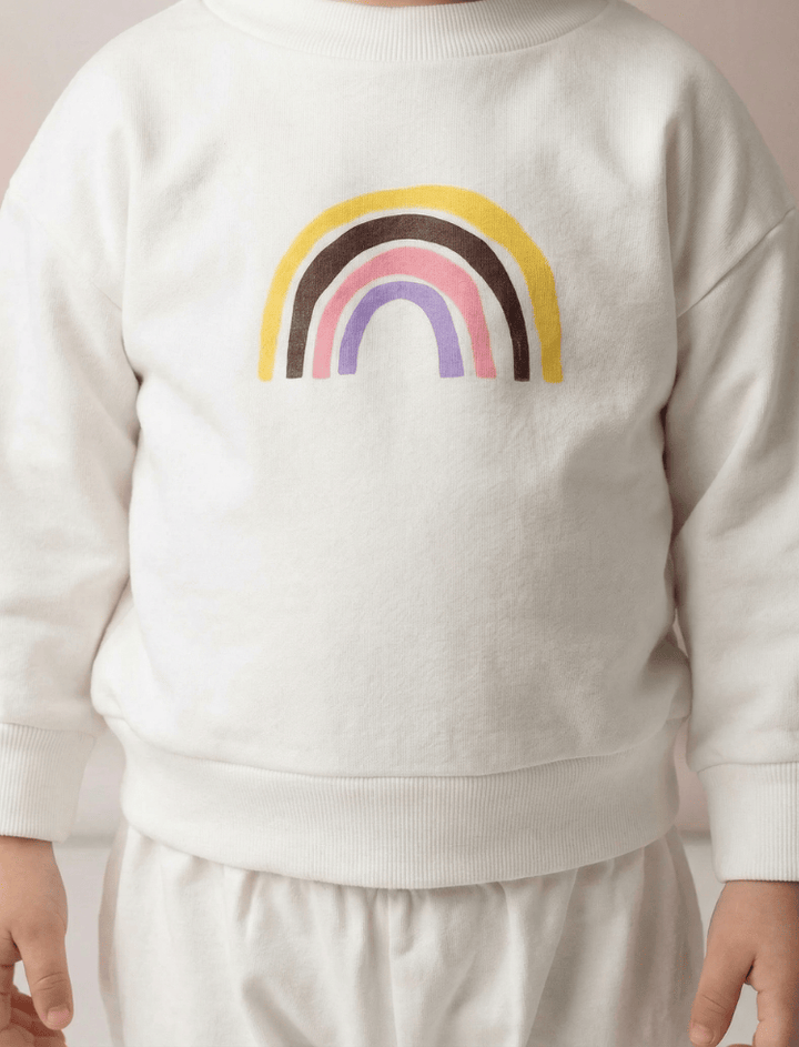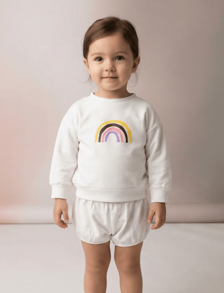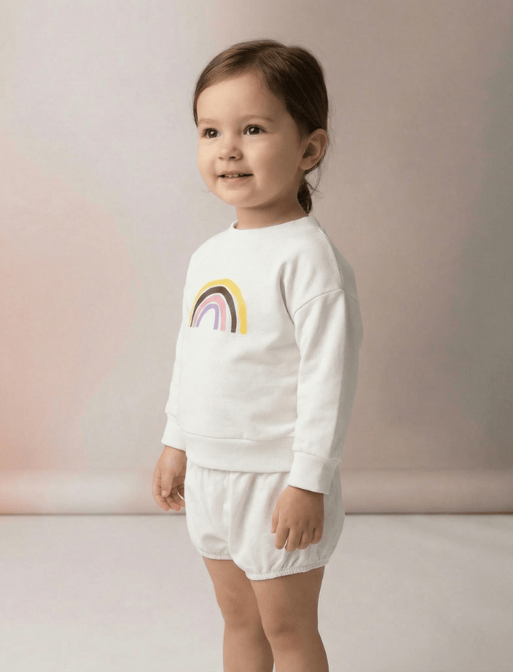 Conjunto blanco arcoiris manga larga y pantalones cortos (2 piezas)