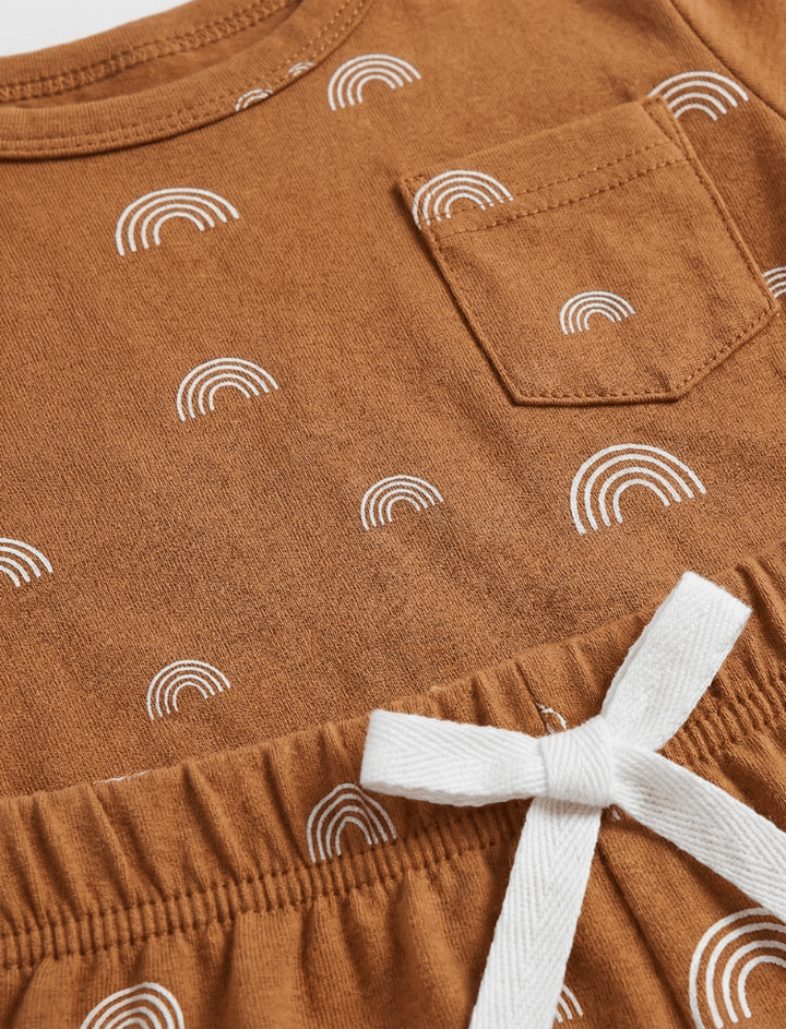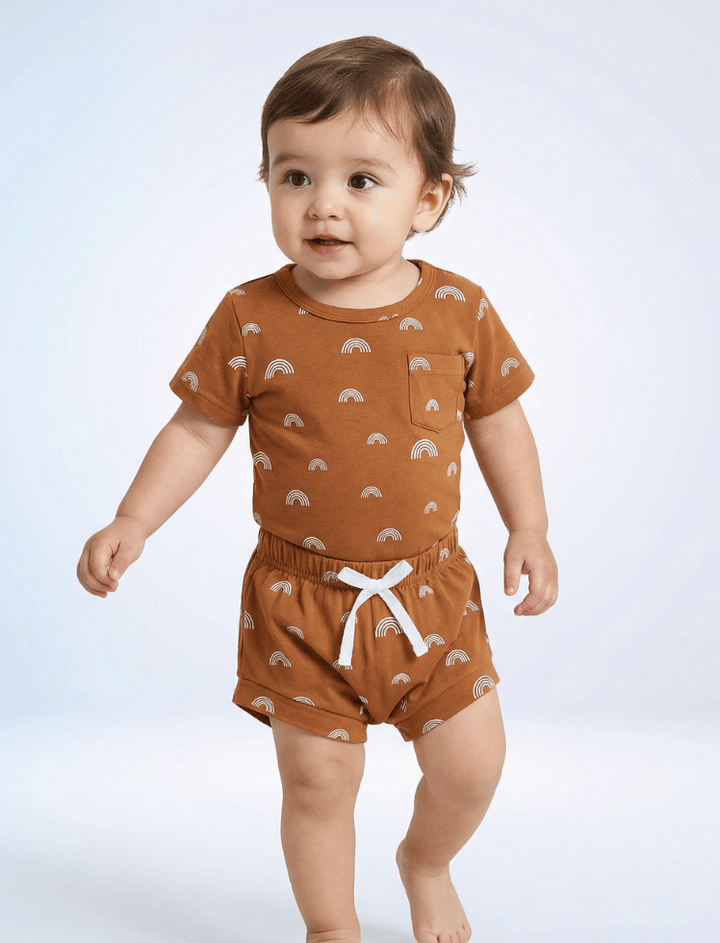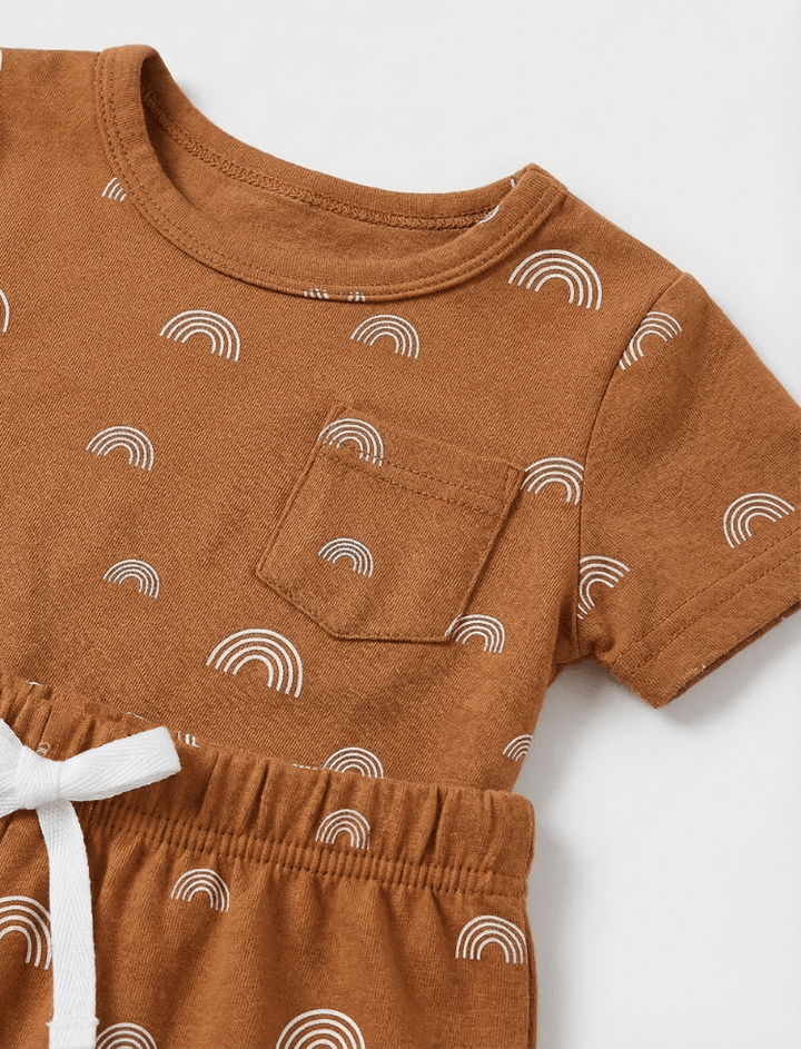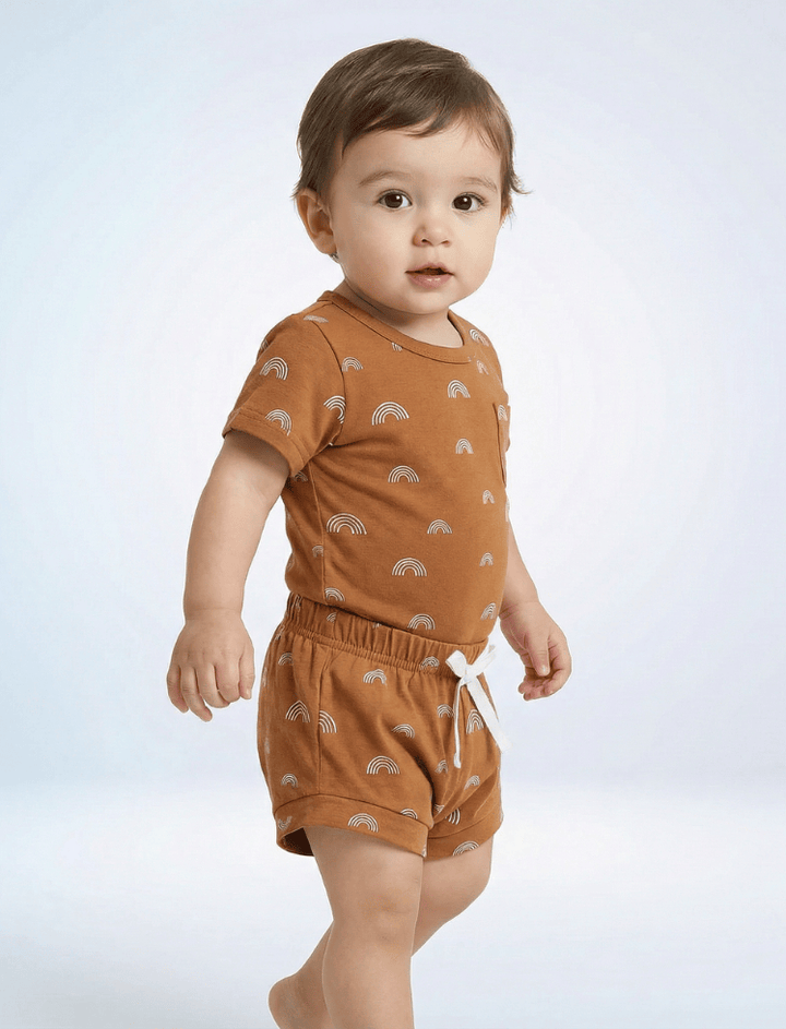 CONJUNTO CAFÉ ARCOIRIS MANGA CORTA Y SHORT (2 PIEZAS)