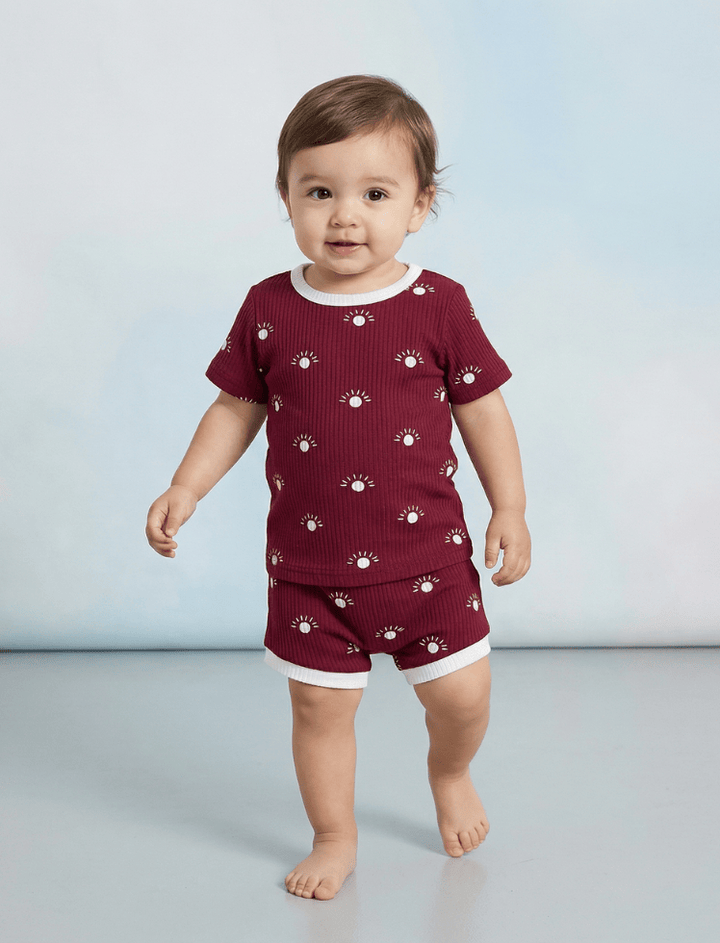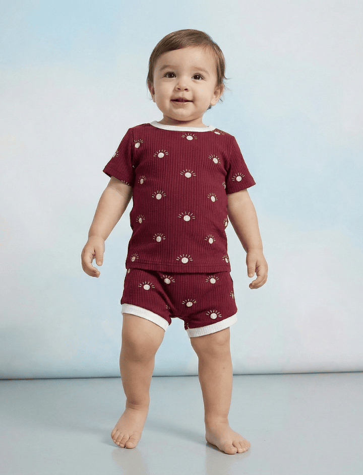 CONJUNTO SOLES VINO TINTO CAMISETA MANGA CORTA Y SHORT (2 PIEZAS)