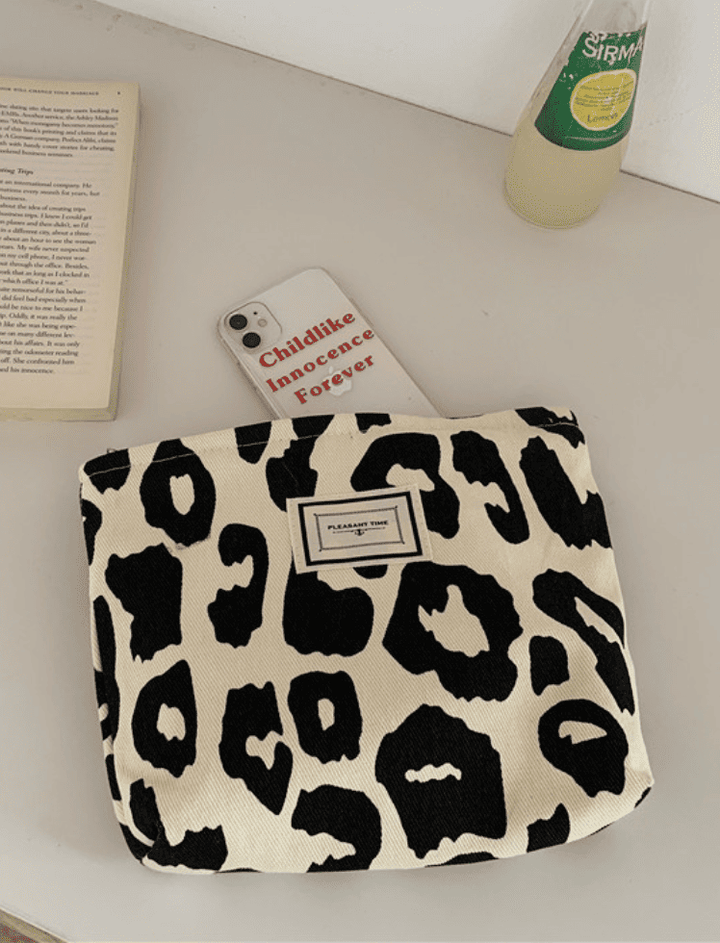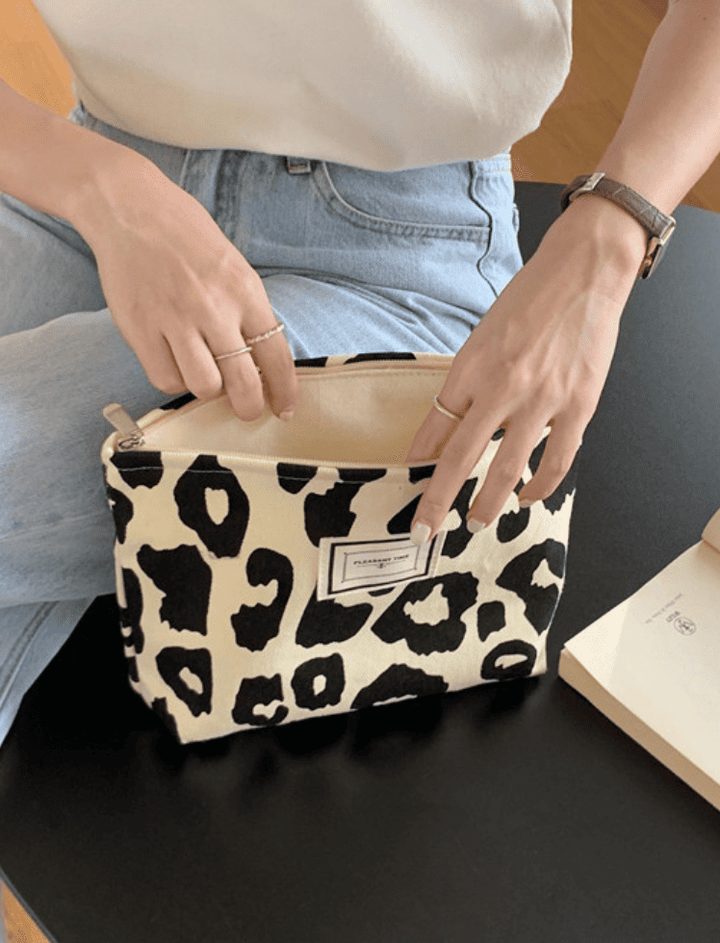 Hecha de un resistente material de lona, su estampado animal print le añade un toque moderno y atrevido a cualquier look. Con una estructura firme y compacta, es ideal para llevar tus esenciales organizados y con estilo. Su cierre seguro y la etiqueta de marca refuerzan su diseño único y trendy.