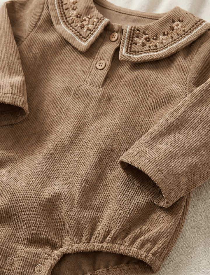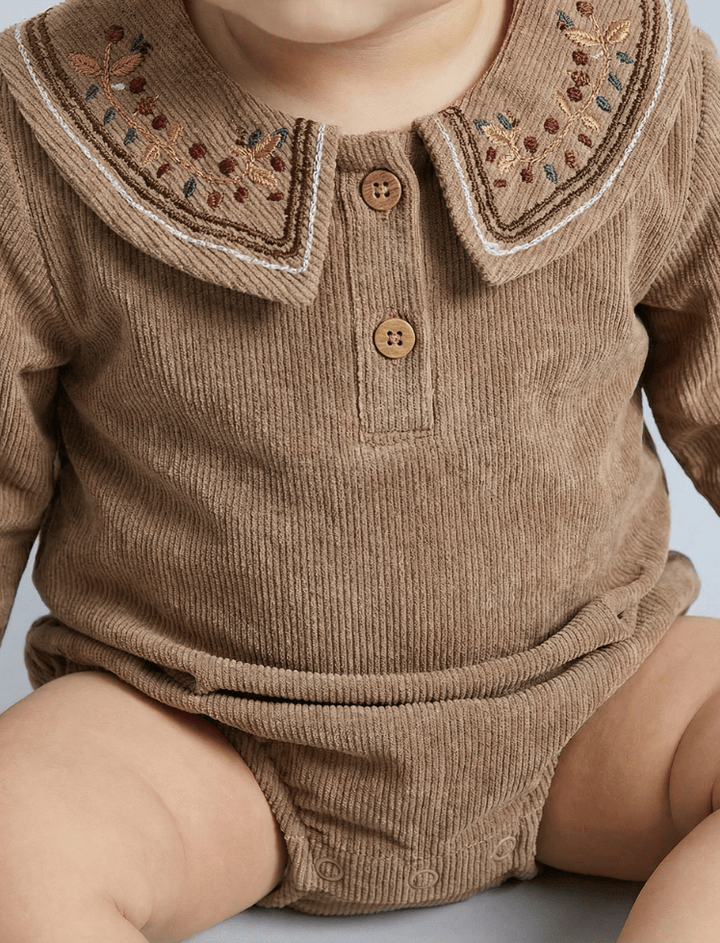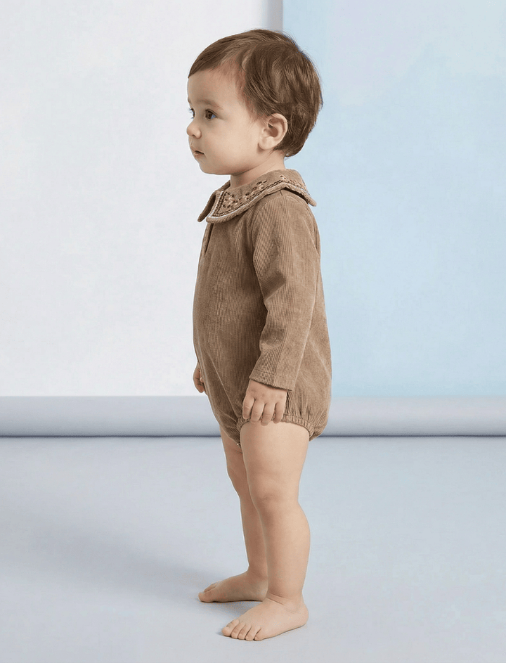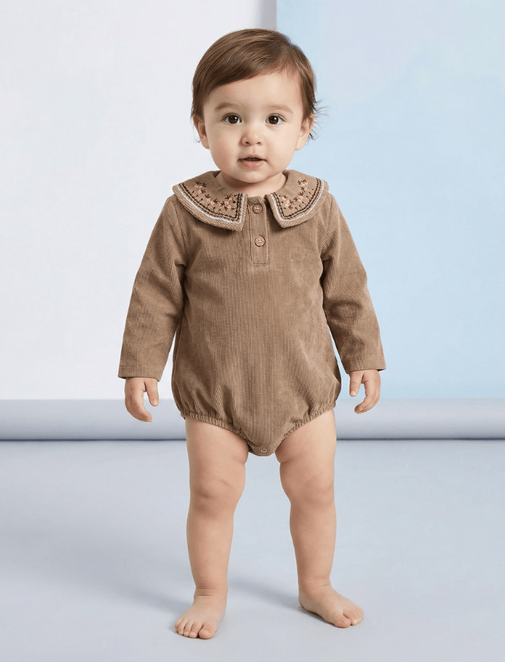 ENTERIZO CUELLO BORDADO MANGA LARGA CAFÉ