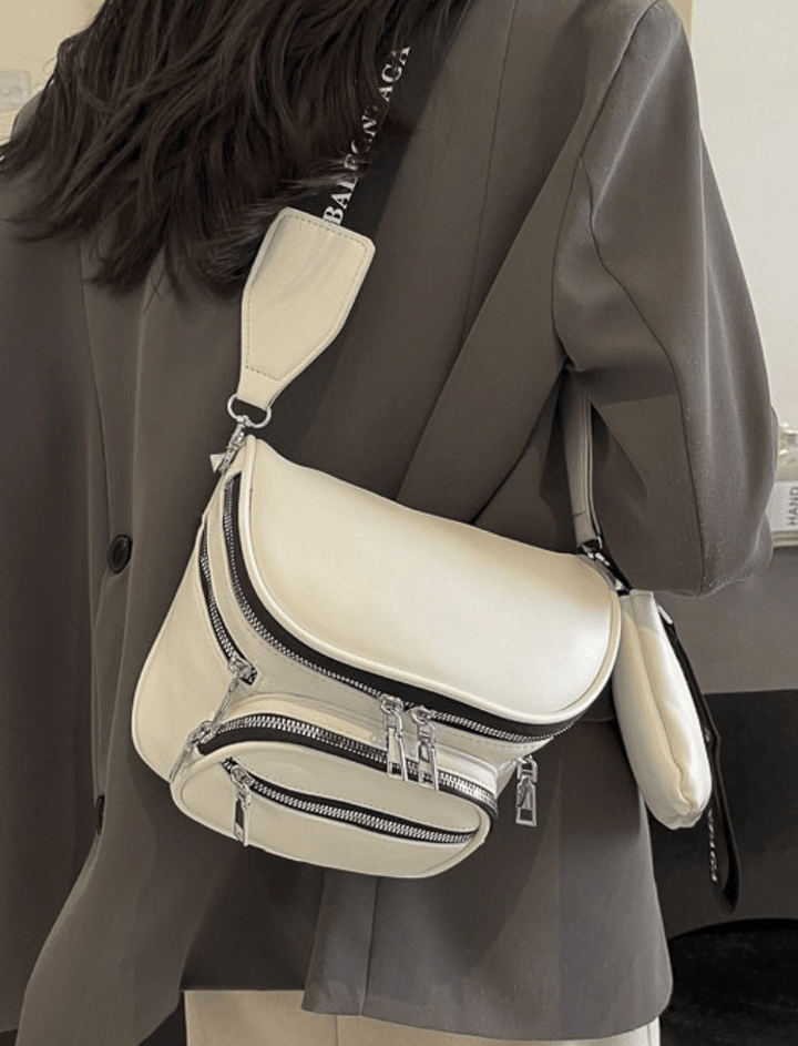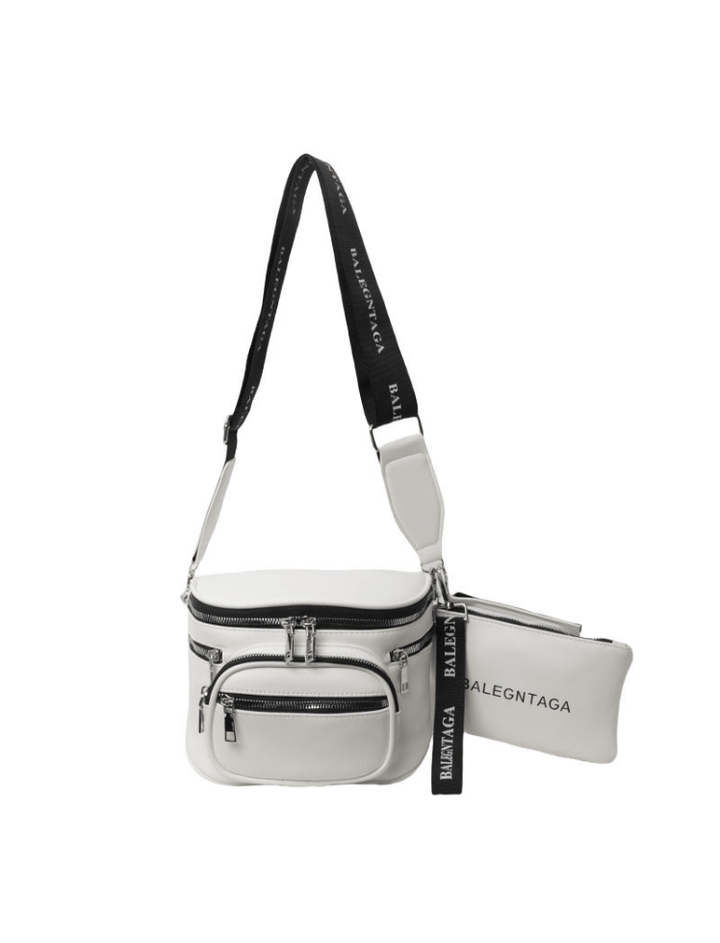 Un diseño moderno que combina estilo y funcionalidad. Este bolso tipo crossbody está elaborado en cuero sintético de acabado mate, con cierres metálicos que le aportan un look contemporáneo y urbano. Su interior amplio y compartimentos frontales con cremalleras permiten organizar tus esenciales con comodidad. La correa ajustable con diseño tipográfico le da un toque distintivo y vanguardista, ideal para un estilo street elegante y atrevido.
